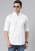 DEZANO Men Solid Casual White Shirt