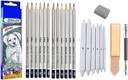 DEZIINE 21 PCS Pencil Set With 12 Pencil 6 Blending Stumps 1 Sand Paper, Pencil (Set of 1, Black)