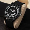 Bold Black Dial: Features a sleek, deep black dial with a unique wave pattern that adds a dynamic touch to its design.