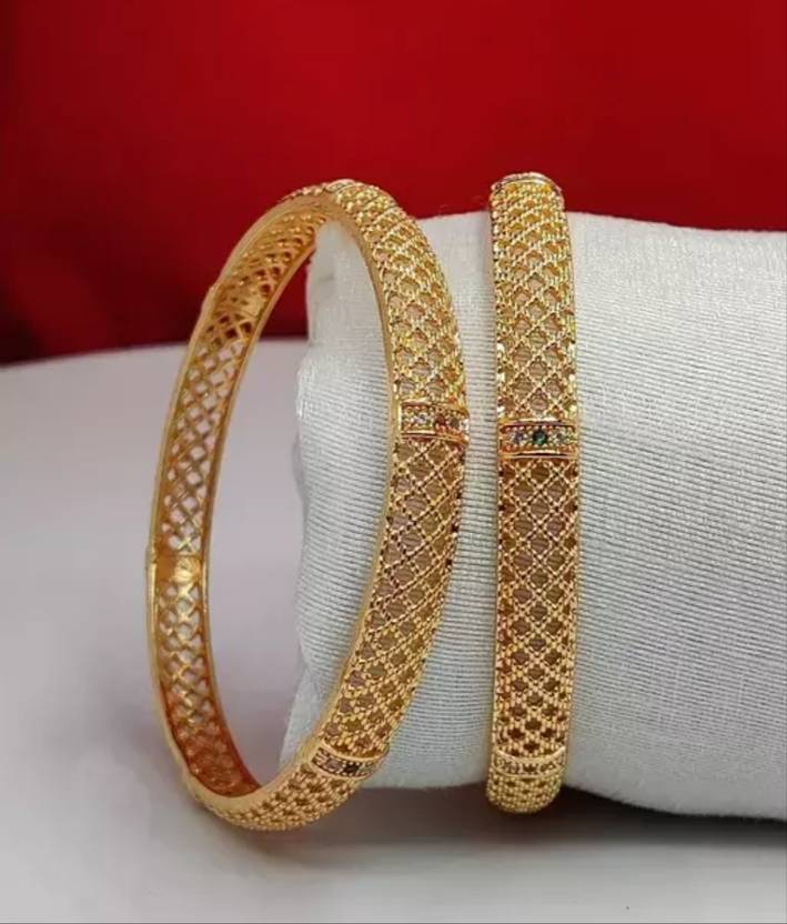 DH JEWELLS Brass Diamond Gold-plated Bangle Set (Pack of 2)