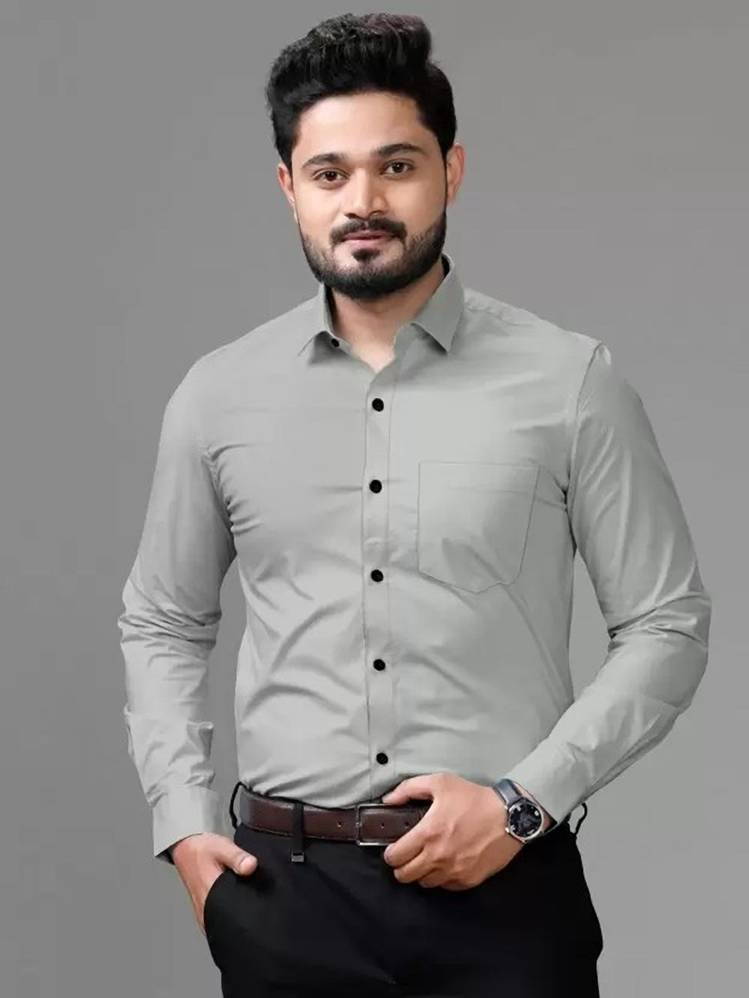 Men Regular Fit Solid Spread Collar Formal Shirt
