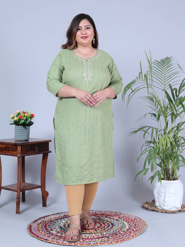 Dhan Nirankar Creation Women Striped Straight Kurta (Light Green)
