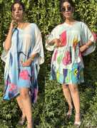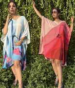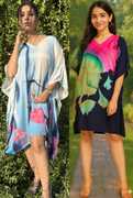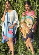 Get the simplicity and grace with this crape Kaftan Kurta. The digital printed work in the course of the dress is awe inspiring. Comes with matching Waist dori to adjust as per your comfort.