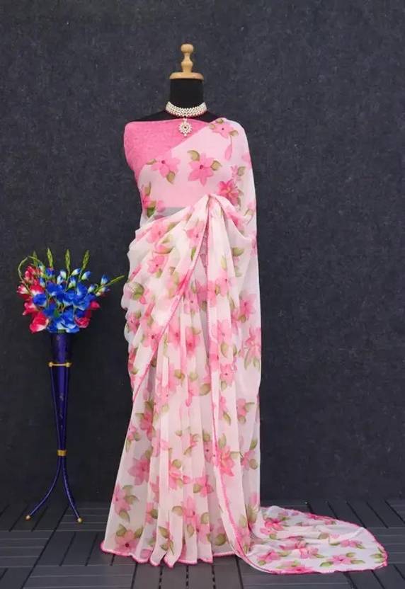 This stitched ready-to-wear saree features an unstitched art silk blouse piece and is crafted from Chiffon fabric adorned with beautiful floral and digital prints. With a length of 5.2 meters and a 0.8-meter blouse piece, it’s perfect for quick draping in just one minute. Ideal for casual, festive, office, or daily wear, this saree is competitively priced compared to other sellers, making it a wonderful gift for someone special!