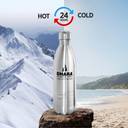 Because the water bottle is made of premium stainless steel, it will last a long time and have a sleek, contemporary appearance. Stainless steel ensures a secure and hygienic bottle for your drinks in addition to its ability to withstand corrosion. Because of the material's well-known robustness, the bottle is durable enough to endure the rigours of regular use.