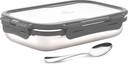 Dhara Stainless Steel Food Grade Rust Proof Blaze Tiffin Box Container With Four Side Clips Lock Grey 1 Containers Lunch Box (900 ml)