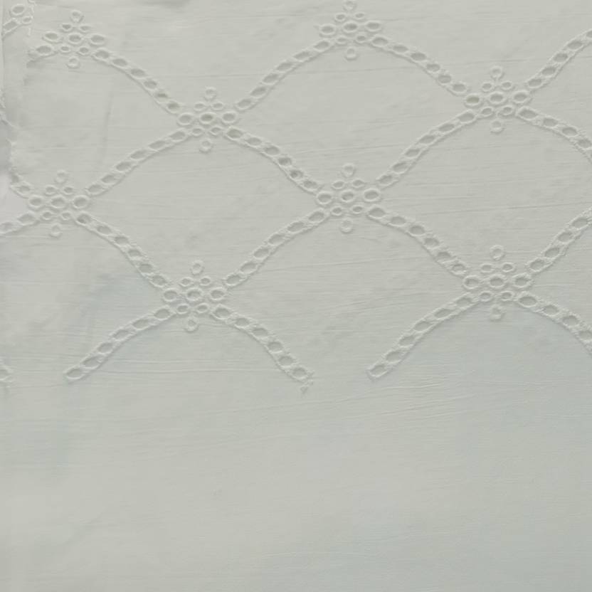 White Cotton Eyelet Embroidered Fabric, Cotton Fabric Solid