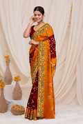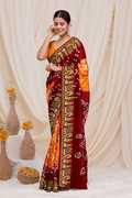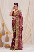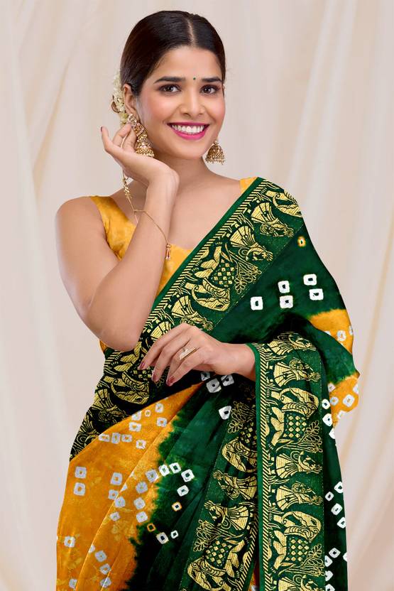 This Saree Is Made From Bandhani Art Silk Fabric And Finished In Good Color. It Looks Very Beautiful And Attractive Because Of The Contrast Blouse, Saree Border. It's The Perfect Traditional That Will Lend Effortless To Your Style. This saree is suitable for get stylish look in marriage ceremony, functions, parties, reception, festive occasions, get together, evening & gifting to loved ones. It gives you gorgeous look with its beautiful stunning design.