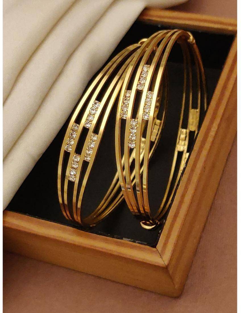 Size : Free About - Polish: Gold, Color: Gold, Type: Bangles, A set of Two handcrafted gold bangles, embodying traditional opulence and timeless beauty. Elevate your style with these exquisite bangles for a touch of Indian heritage, They are cherished for their beauty, craftsmanship, and symbolic significance, making them a prized possession for many individuals around the world.This exquisite gold bangle is a perfect blend of classic elegance and contemporary style. The bangle features a sleek, polished design that effortlessly enhances any outfit.