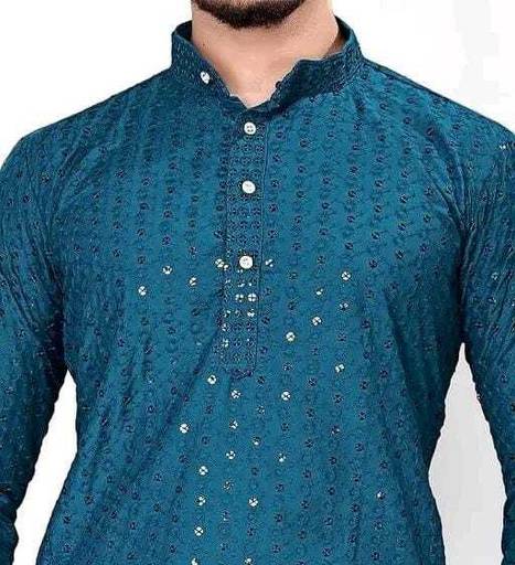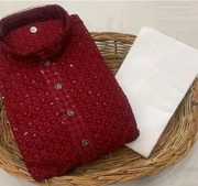 Elevate your ethnic wardrobe with our stunning Chikan Embroidered Work Kurta Set, designed for the modern individual who appreciates tradition. Made from viscose rayon fabric, this kurta features exquisite chikan embroidery that adds a touch of elegance to your ensemble. The mandarin collar and button-down front create a sophisticated silhouette, while the full sleeves and side slits ensure comfort and style. With two convenient pockets, this kurta is as practical as it is fashionable. Paired with crisp white pants, this set is perfect for festive occasions or casual gatherings, making it a versatile addition to your collection.