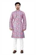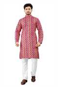 Mens Straigth Printed Kurta & Solid White Pyjama Set With Multiple Colour Option And Sizes