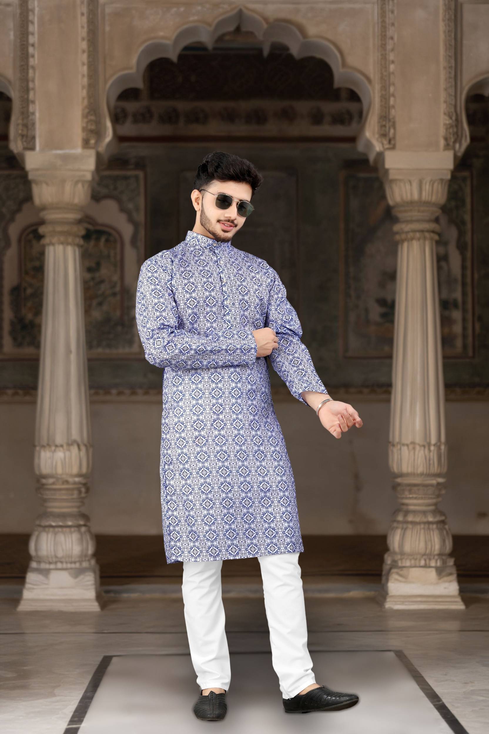 Rock the night in this printed kurta featuring elegant printed work that adds just the right amount of sparkle. Made from a soft cotton blend fabric, this kurta combines comfort with effortless style. Its vibrant coor shade and detailed print give a modern festive vibe, perfect for parties, celebrations, or casual outings. Pair it with dark jeans and sleek loafers to create a bold, confident look that’s sure to steal the spotlight wherever you go.