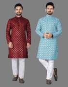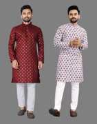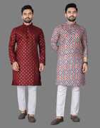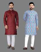 Elevate your ethnic wardrobe with our stunning Combo Pack of 2 Kurta, featuring multicolor hues that celebrate tradition with a modern twist. Made from a soft cotton blend fabric, these full-sleeve kurtas offer comfort and breathability, perfect for any occasion. The stylish Mandarin neck and all-over print add a touch of elegance, while the convenient side slits and two pockets ensure practicality without compromising on style. Embrace the festive spirit and make a statement with this versatile duo that is sure to turn heads!