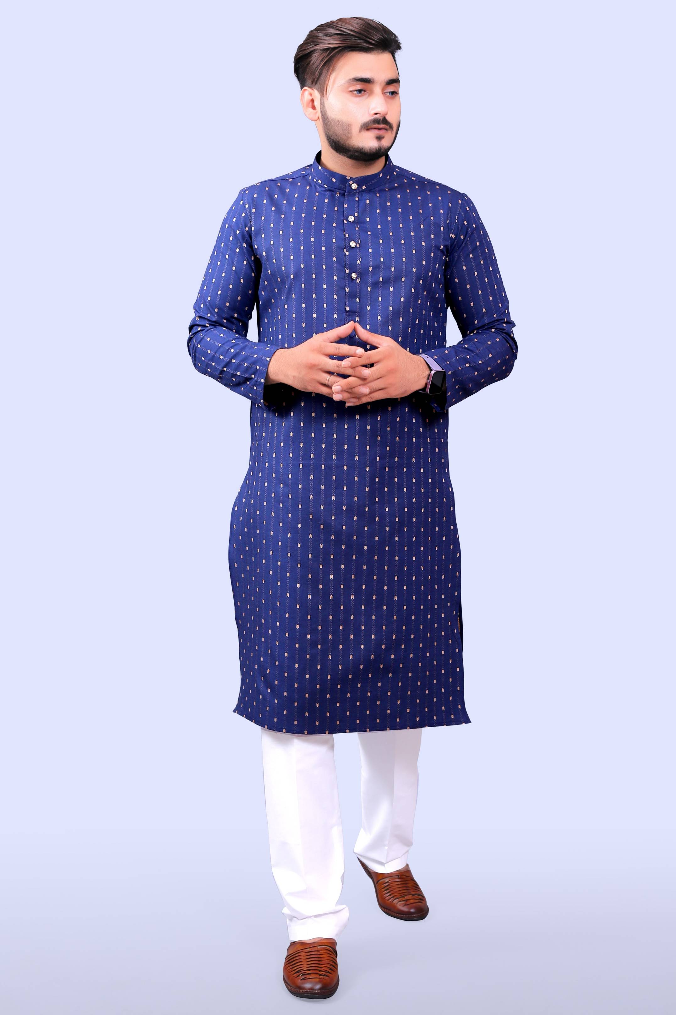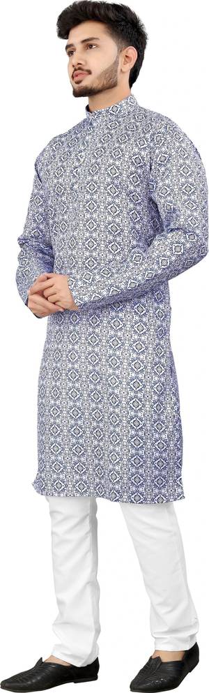 This men’s printed kurta is made from cotton-blend fabric, offering a comfortable regular fit ideal for casual or festive occasions. Featuring a solid color design, it comes with a mandarin collar, full sleeves, and side slits for ease of movement. The knee-length silhouette is complemented by a straight, with button closure on the front placket. Suitable for summer and all seasons, this kurta is easy to maintain with machine. Designed for everyday wear, ethnic gatherings, or layering under jackets, it combines traditional styling with modern comfort.