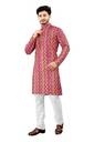 This men’s printed kurta is made from cotton-blend fabric, offering a comfortable regular fit ideal for casual or festive occasions. Featuring a solid color design, it comes with a mandarin collar, full sleeves, and side slits for ease of movement. The knee-length silhouette is complemented by a straight, with button closure on the front placket. Suitable for summer and all seasons, this kurta is easy to maintain with machine. Designed for everyday wear, ethnic gatherings, or layering under jackets, it combines traditional styling with modern comfort.