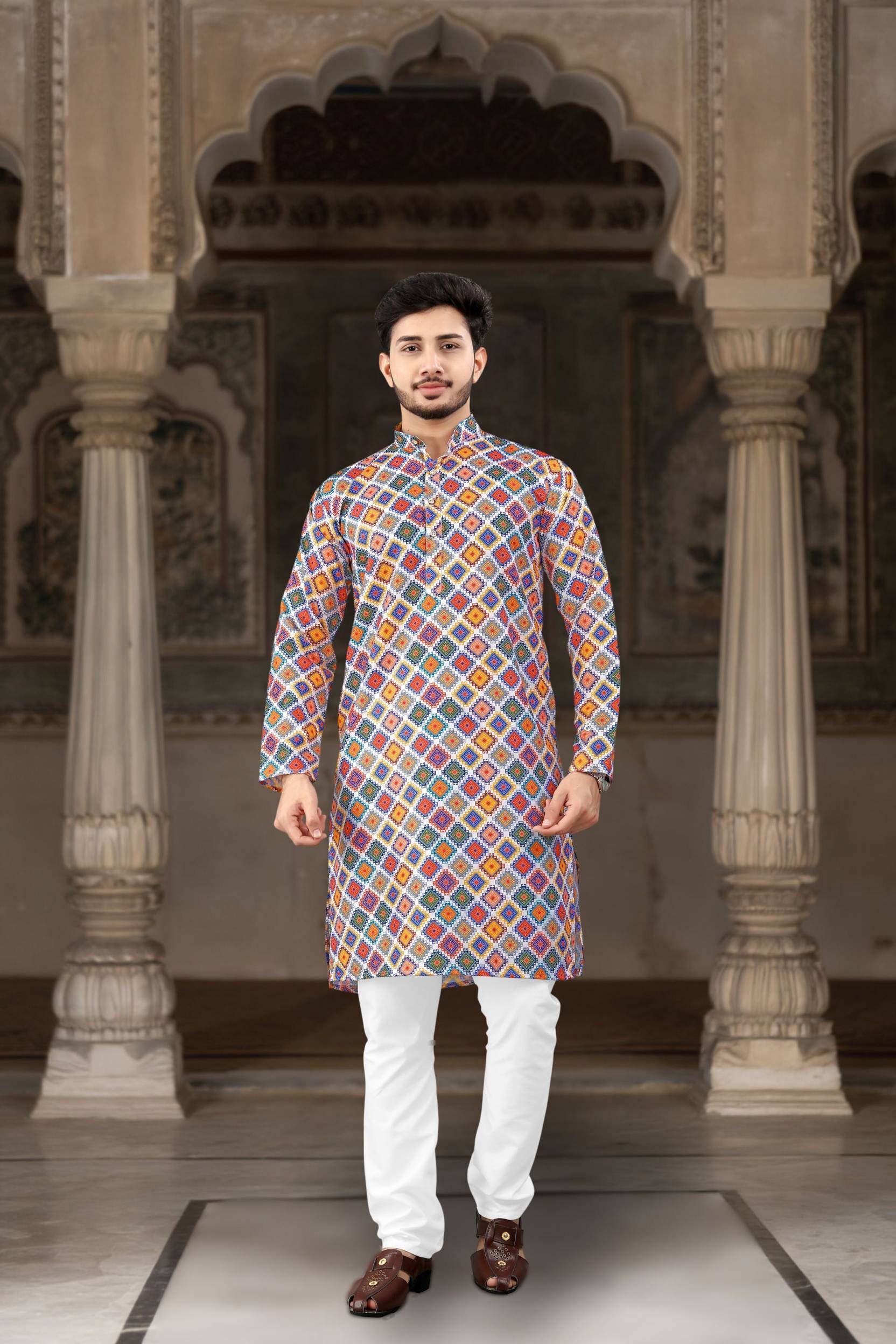 Rock the night in this printed kurta featuring elegant printed work that adds just the right amount of sparkle. Made from a soft cotton blend fabric, this kurta combines comfort with effortless style. Its vibrant coor shade and detailed print give a modern festive vibe, perfect for parties, celebrations, or casual outings. Pair it with dark jeans and sleek loafers to create a bold, confident look that’s sure to steal the spotlight wherever you go.
