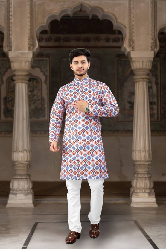 This men’s single kurta is made from soft cotton blend fabric and comes in a multicolor shade with a classic ethnic motif print. Designed with a mandarin collar, regular full sleeves, and knee-length fit, this kurta offers comfort for long wear. Two side pockets add daily-use convenience. Suitable as a kurta for men cotton, printed kurta for men, kurta for men for wedding, and kurta for men puja special, this men’s kurta for wedding pairs well with pajama, churidar, or jeans and is ideal for festive, traditional, and casual occasions.