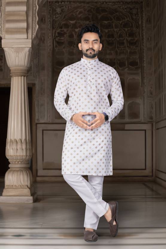 Rock the night in this printed kurta featuring elegant printed work that adds just the right amount of sparkle. Made from a soft cotton blend fabric, this kurta combines comfort with effortless style. Its vibrant coor shade and detailed print give a modern festive vibe, perfect for parties, celebrations, or casual outings. Pair it with dark jeans and sleek loafers to create a bold, confident look that’s sure to steal the spotlight wherever you go.