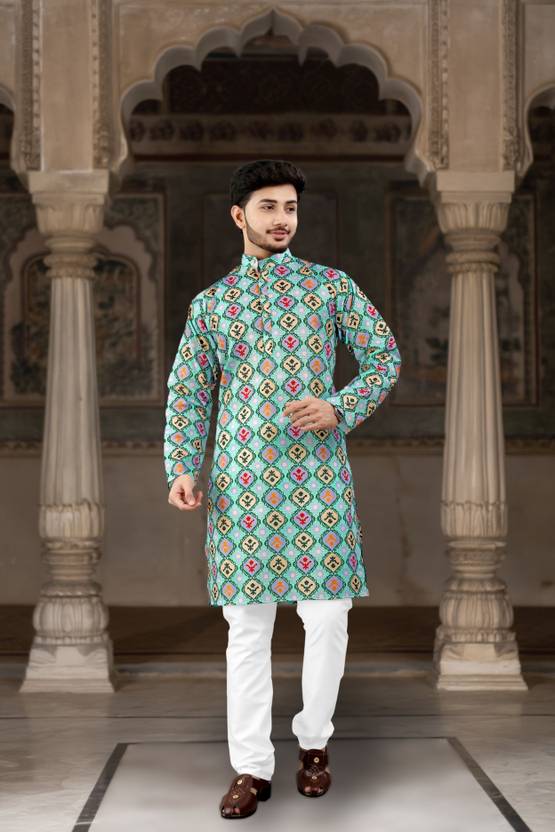 Rock the night in this printed kurta featuring elegant printed work that adds just the right amount of sparkle. Made from a soft cotton blend fabric, this kurta combines comfort with effortless style. Its vibrant coor shade and detailed print give a modern festive vibe, perfect for parties, celebrations, or casual outings. Pair it with dark jeans and sleek loafers to create a bold, confident look that’s sure to steal the spotlight wherever you go.