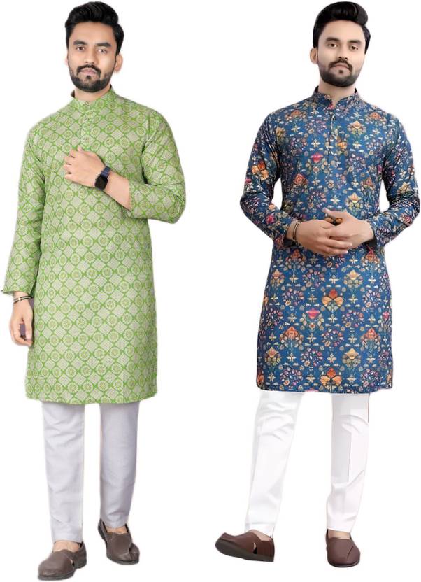 Elevate your ethnic wardrobe with our stunning Combo Pack of 2 Kurta, featuring multicolor hues that celebrate tradition with a modern twist. Made from a soft cotton blend fabric, these full-sleeve kurtas offer comfort and breathability, perfect for any occasion. The stylish Mandarin neck and all-over print add a touch of elegance, while the convenient side slits and two pockets ensure practicality without compromising on style. Embrace the festive spirit and make a statement with this versatile duo that is sure to turn heads!
