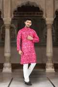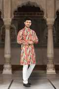 Rock the night in this printed kurta featuring elegant printed work that adds just the right amount of sparkle. Made from a soft cotton blend fabric, this kurta combines comfort with effortless style. Its vibrant coor shade and detailed print give a modern festive vibe, perfect for parties, celebrations, or casual outings. Pair it with dark jeans and sleek loafers to create a bold, confident look that’s sure to steal the spotlight wherever you go.