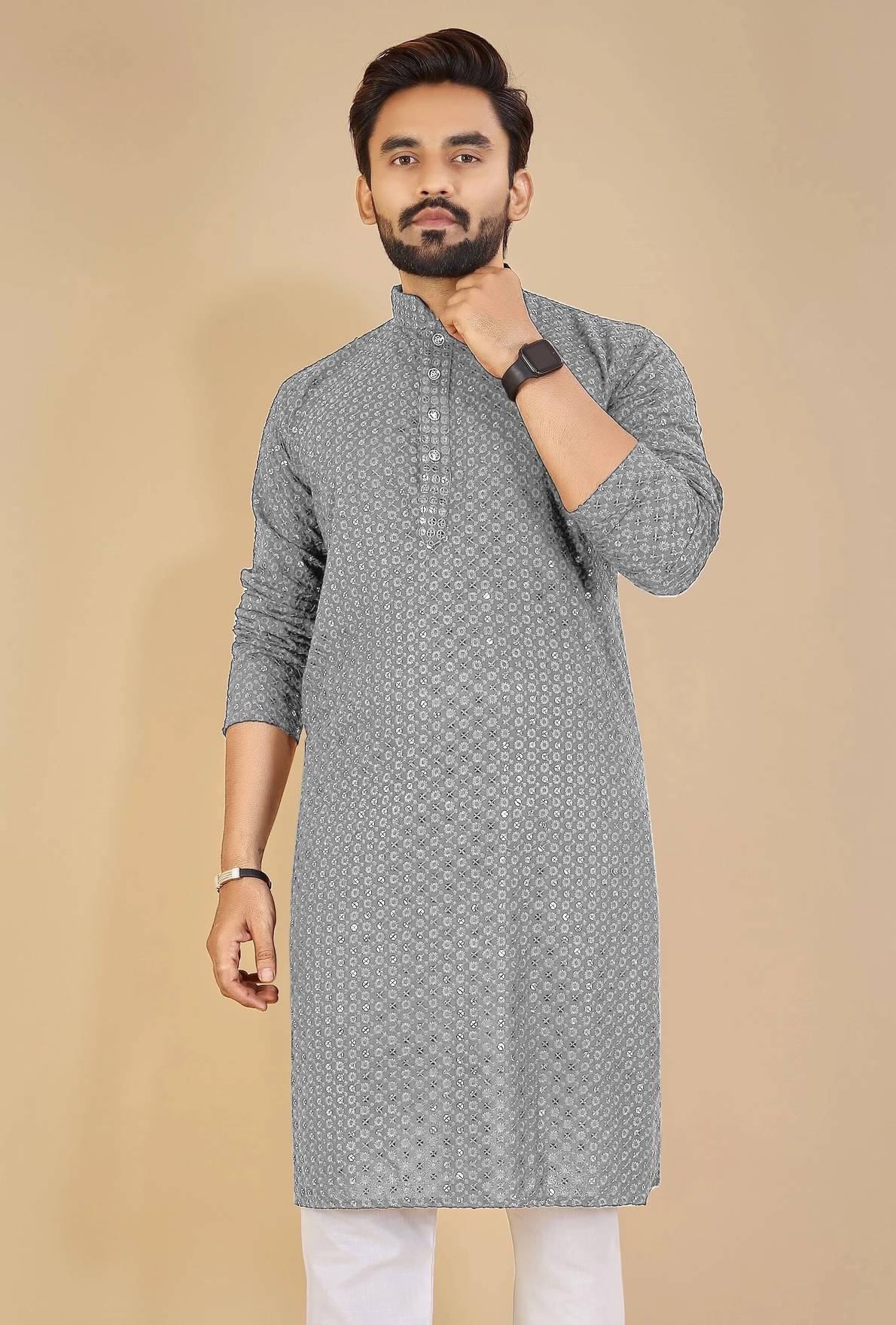 Rock the night in this printed kurta featuring elegant printed work that adds just the right amount of sparkle. Made from a soft cotton blend fabric, this kurta combines comfort with effortless style. Its vibrant coor shade and detailed print give a modern festive vibe, perfect for parties, celebrations, or casual outings. Pair it with dark jeans and sleek loafers to create a bold, confident look that’s sure to steal the spotlight wherever you go.
