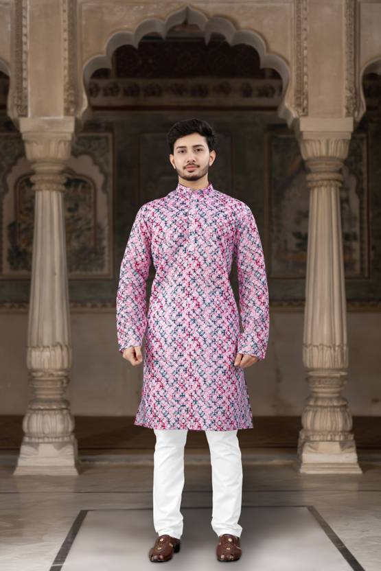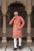 Rock the night in this printed kurta featuring elegant printed work that adds just the right amount of sparkle. Made from a soft cotton blend fabric, this kurta combines comfort with effortless style. Its vibrant coor shade and detailed print give a modern festive vibe, perfect for parties, celebrations, or casual outings. Pair it with dark jeans and sleek loafers to create a bold, confident look that’s sure to steal the spotlight wherever you go.
