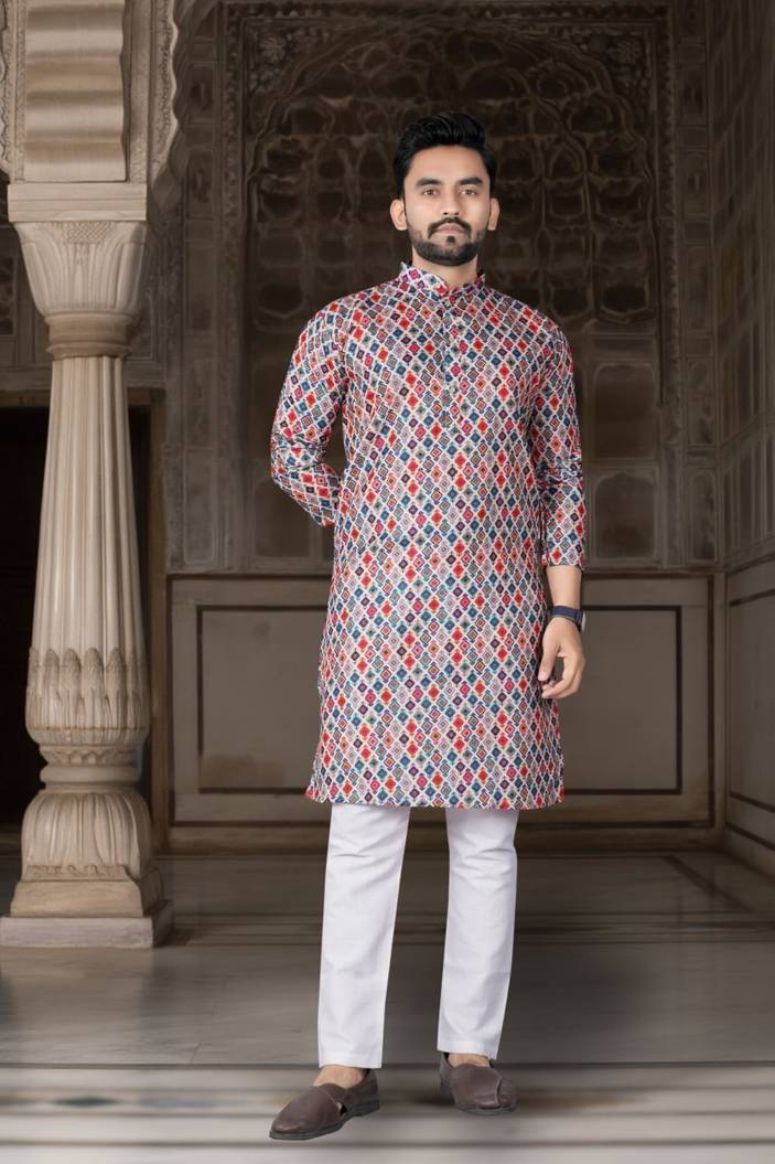 Rock the night in this printed kurta featuring elegant printed work that adds just the right amount of sparkle. Made from a soft cotton blend fabric, this kurta combines comfort with effortless style. Its vibrant coor shade and detailed print give a modern festive vibe, perfect for parties, celebrations, or casual outings. Pair it with dark jeans and sleek loafers to create a bold, confident look that’s sure to steal the spotlight wherever you go.