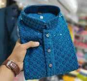 Elevate your ethnic wardrobe with our stunning Chikan Embroidered Work Kurta, made from viscose rayon fabric for a soft and breathable feel. This mandarin collar kurta features a stylish button-down front, full sleeves, and convenient side slits for ease of movement. With two practical pockets on the sides, it combines functionality with elegance, making it perfect for festive occasions or casual outings.