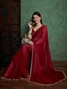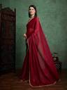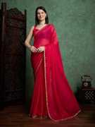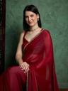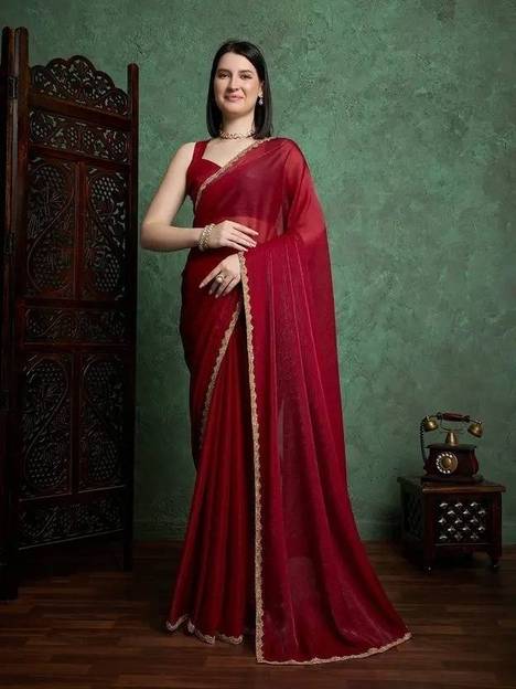 Women Solid RED Designer Soft Georgette Saree With Golden Lace Border & Matching Blouse Piece