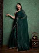 Fabric – Soft Georgette Saree with elegant fall & smooth drape, Rich Dark Green Color with Premium Golden Lace Border, Ideal for Party, Festive, Wedding & Special Occasions, Comes with Matching Unstitched Blouse Piece