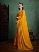 Step into elegance with this Designer Saree, crafted to give you a graceful and luxurious look. The saree features a rich, soft organza fabric that drapes beautifully and a delicate golden lace border that enhances its charm. Perfect for weddings, parties, receptions, festive celebrations and cocktail nights, this saree gives you a modern yet traditional appeal. The lightweight texture ensures comfort, while the glossy finish adds a touch of glamour. Comes with a matching unstitched blouse piece, allowing you to customize the fit according to your style.