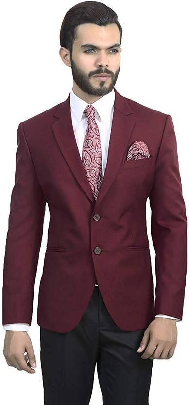 Dhingra Solid Single Breasted Formal Men Blazer (Red)
