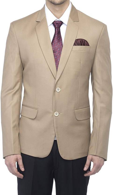 Dhingra Solid Single Breasted Formal Men Blazer (Beige)