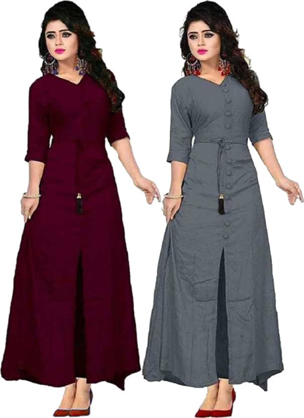 DHMPONE ENTERPRISE Women Solid A-line Kurta (Maroon, Grey)