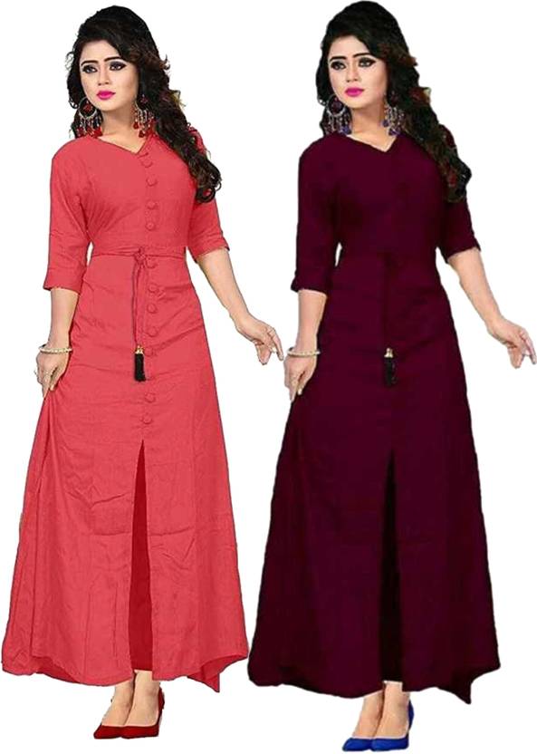 DHMPONE ENTERPRISE Women Solid A-line Kurta (Maroon, Pink)