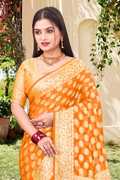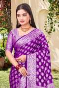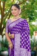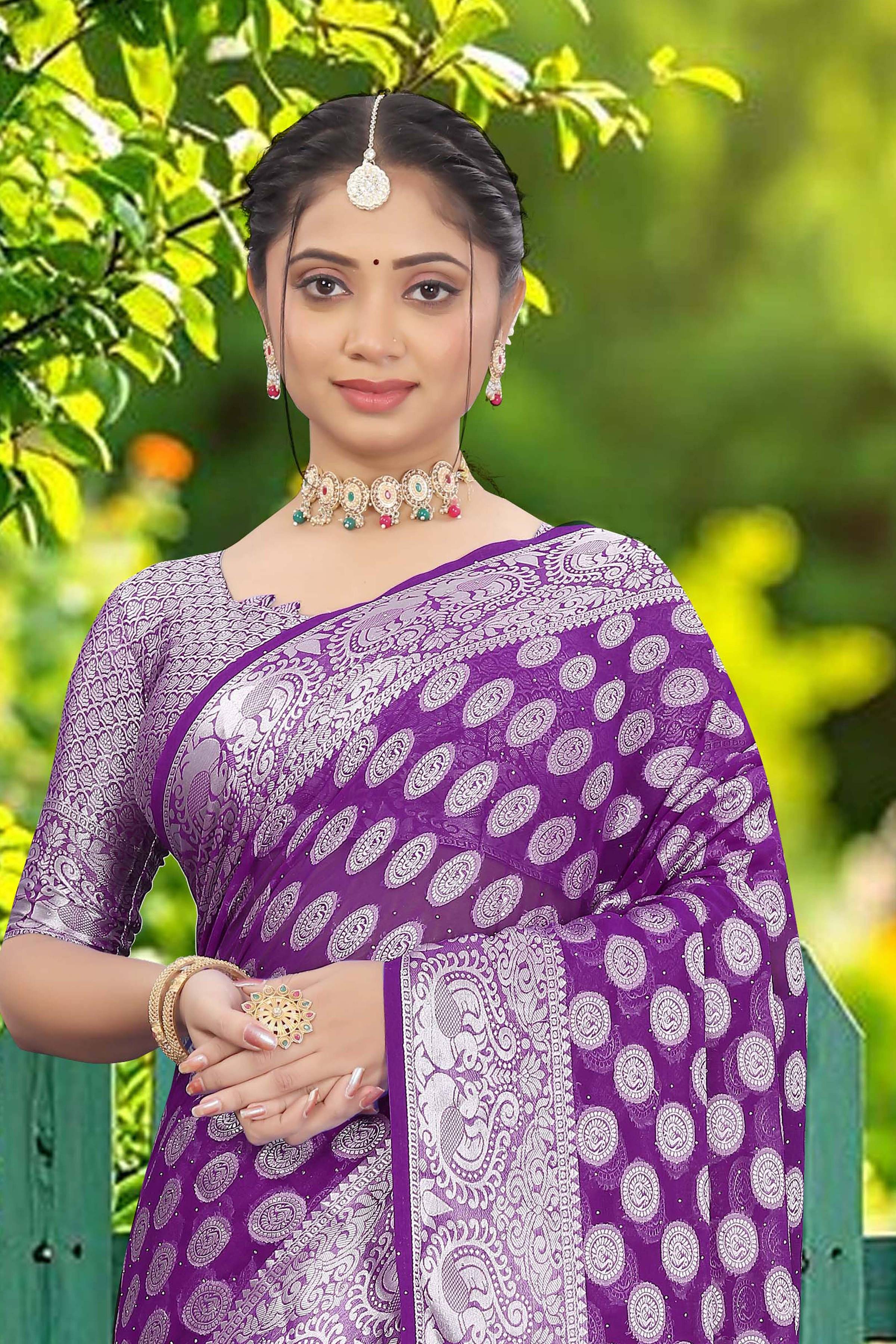 FINE WEAR Woven Banarasi Georgette Saree (Multicolor)