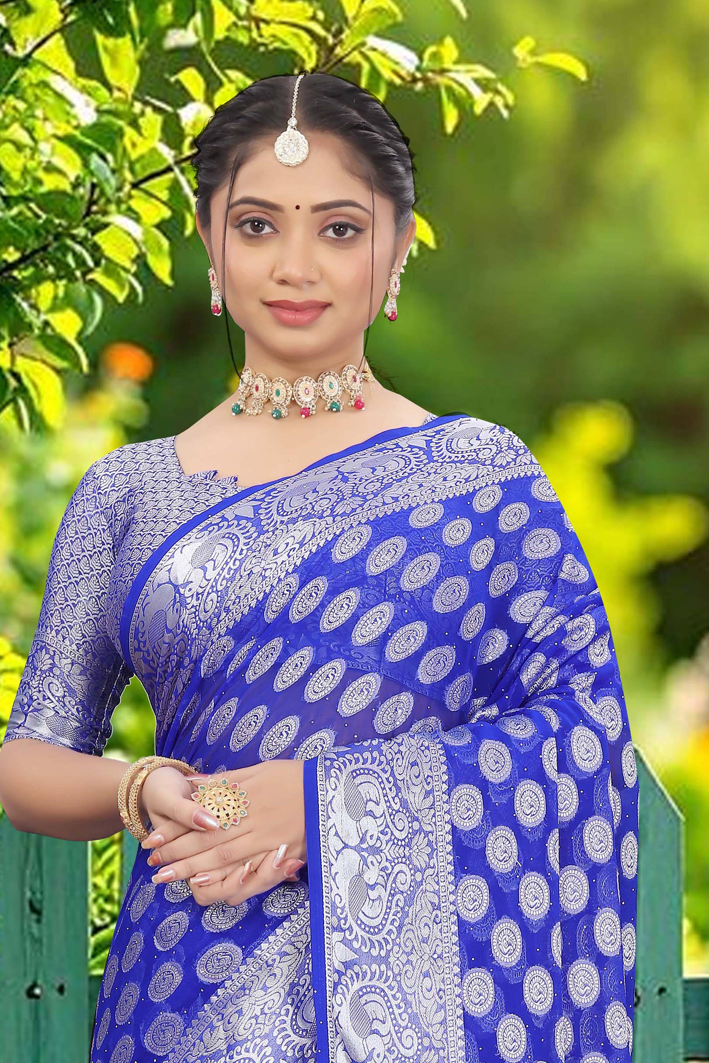 DHRUVIL TEXTILES Woven Banarasi Georgette Saree (Multicolor)