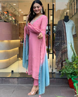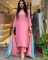 Dhvija enterprise Embroidered Kurta, Trouser/Pant & Dupatta Set