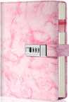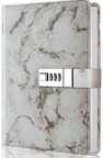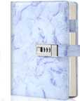 Dhvyant Mart PU Leather Wided Ruled Marble Print Diary with Digital Password Lock A5 Diary Single Rule 200 Pages (Blue)