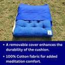Indulge in the art of meditation with the beautifully crafted DhyaanAasan™ Awareness Meditation Cushion, designed for your daily Vipassana practice at home. Made from 100% pure cotton and eco-friendly materials, this cushion not only provides the comfort needed for peaceful meditation but also brings the essence of a Vipassana meditation center to your living space, fostering consistency in your daily practice. Embrace the recommended saving combo for an enhanced meditation experience. Cotton, known for its natural properties, ensures comfortable sitting during meditation, making it a preferred choice among meditators. The cherry on the cake is the fact that this cushion is a handcrafted masterpiece, created by Indian artists with a special focus on women empowerment. No used materials, no synthetic elements—this cushion is a testament to purity, made with unused 100% cotton. Additionally, the removable cover adds convenience to your meditation routine, making it easily washable and maintaining the freshness of your space. Elevate your meditation journey with this mindful creation, bringing the serenity of a Vipassana meditation center right to your home.