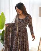 Update your Gown collection with this exquisite daily Woman’s luxury gown from DHYAN CREATION ONLINE. Digital Printed Gown-Dupatta with Flower Print , It looks Adorable for women, it Designed to flatter all body types, gowns for women combine the best parts of western and Indian wear into one stunning ensemble.............. Fabric & Work :- Rich Big Flower Digital Printed Georgette Fabric With With Samosa Design Lace Border......... Lining :- Cotton (Full Inner Top To Bottom)......... Top Flair :- 4.5 Meters (Umbrella Flair)....... Sleeve Type :- 3/4 Sleeve......... Neck Type :- Fancy Round Neck........ Stitching Type :- Standard Stitching........ Top Length :- 52 Inch..... Type :- Readymade Gown..... Containt :- Dupatta (Comes With Contrast Matching Silk Dupatta)