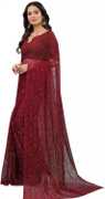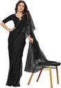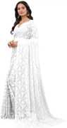 Dhyey Fashion Embroidered Lucknow Chikankari Net, Brasso Saree (Black)