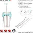 Metal brings to you stainless steel tumblers with silicon aperture through which you can drink the liquid directly with the help of a straw without opening the tumbler lid. These are a replacement for plastic glass tumbler - stainless steel tumbler with steel lid fixed with a silicon gasket. Stainless steel is lauded for its durability and is also one of the safest materials used in the kitchen. The wide mouth design allows you to clean them efficiently to maintain hygiene. Airtight, leak-proof, freezer safe. Long-lasting and durable. This tumbler is therefore safe, sturdy and efficient at storing your beverages for longer periods of time. Handy & easy to carry. These tumblers are perfect for carrying liquids like mineral water, juice, coconut water, tea, coffee and cold drinks while travelling. They are perfect for use as butter milk bottles, juice bottles for office. As these tumblers are airtight, they do not allow the liquid contents to seep out and ruin other items in your bag. Easy to carry for backpacking, hiking, traveling, etc. It come with stainless steel straw, 1 straw-brush to make cleaning even easier presented in a simple Gift Box.