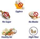 Courtesy of their flour blend, these cookies contain no flour. This makes them a good solution if you are looking to reduce your intake of refined carbohydrates. And, the absence of maida contributes to a low glycemic index which can be beneficial for blood sugar management.