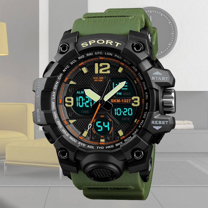 Analog-Digital Watch - For Men Green Men's 1327 Multi-Functional Sports Watch_EF