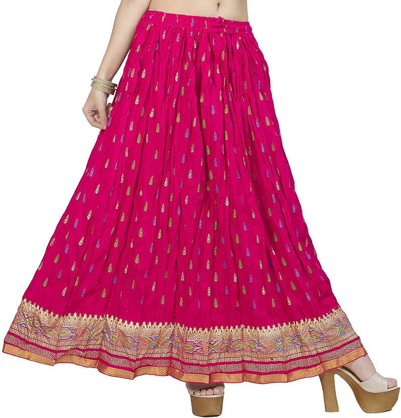 DIAMO Printed Women Flared Pink Skirt