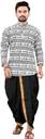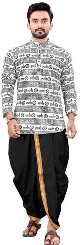as a brand brings you quality and affordability. In market since 1958, we take pride in our commitment to maintain quality standards in each piece manufactured by us. This special piece from Royal Kurta stands out because of its stylish self design Kurta Dhoti.This Kurta is made up of Cotton fabric. Team this Long Kurta with Salwar and embroidered mojris to look apart on special occasions.
