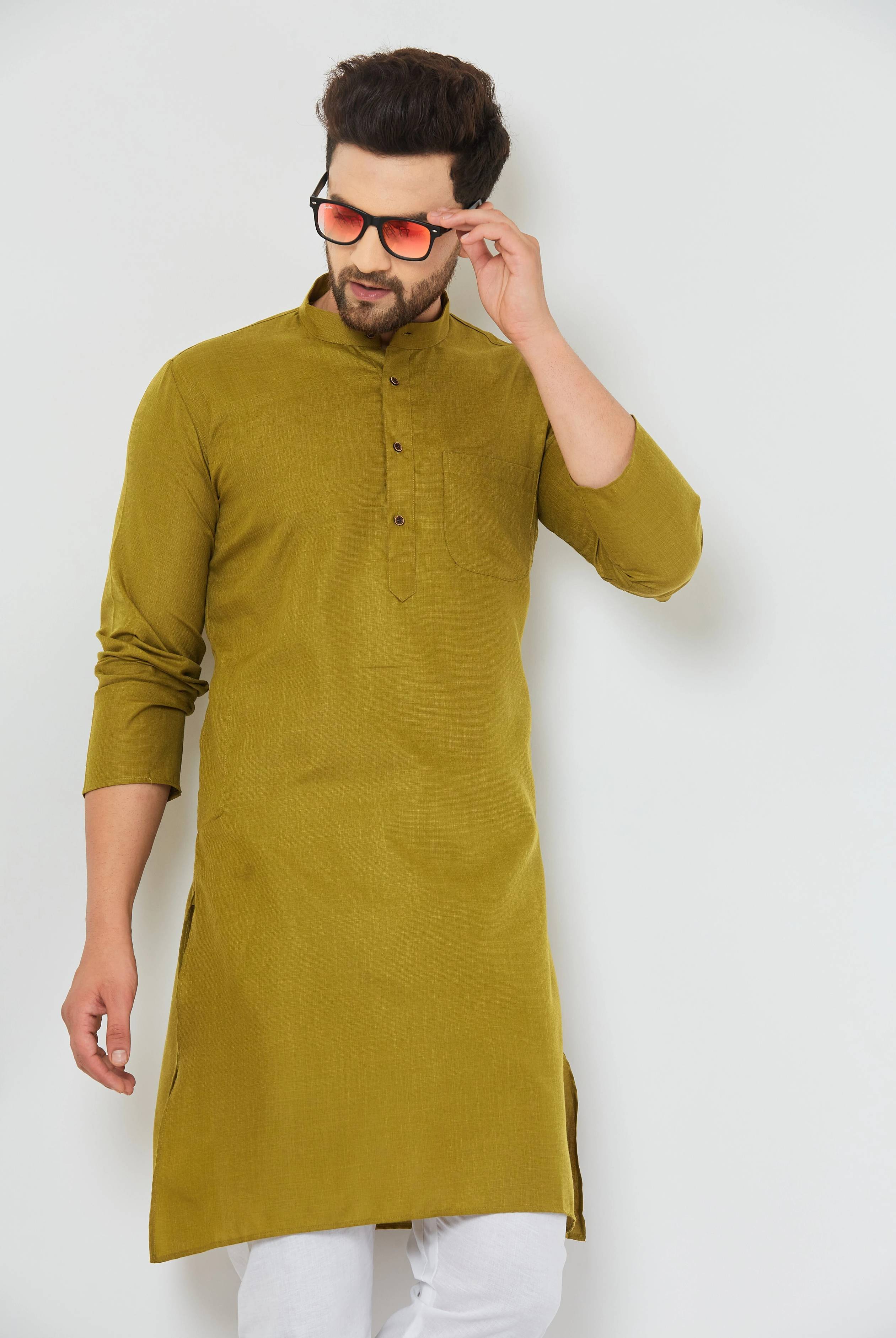 The classic Pathani style gives a smart and masculine look, suitable for festivals, functions, casual outings and daily wear. It features a regular fit, neat stitching and a timeless solid design that never goes out of fashion. Pair it with pajama or jeans for a complete ethnic look.