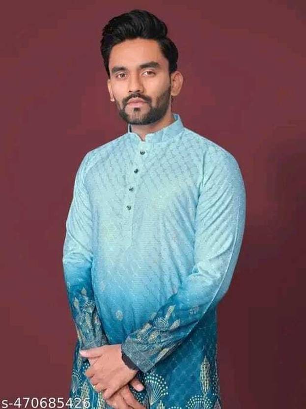DIAMOND CLUSTER Men Printed Cotton Silk Straight Kurta  (Multicolor)